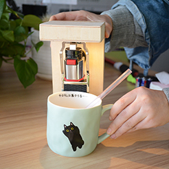 該作品是雙向使用水杯,靈感來(lái)源于杯子的形狀和筆筒類(lèi)似,書(shū)桌上擺兩個(gè)太占空間了