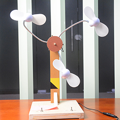 該作品是一個(gè)萬(wàn)向多頭風(fēng)扇,旨在增加普通小風(fēng)扇的趣味性和實(shí)用性