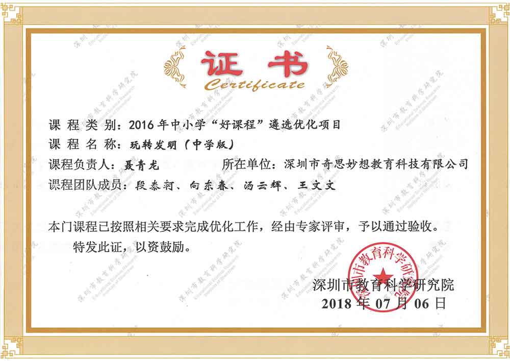 創(chuàng)造了國(guó)內(nèi) “實(shí)物載體創(chuàng)新法”,是目前深圳中小學(xué)創(chuàng)新教育,實(shí)力最強(qiáng)的教育機(jī)構(gòu)