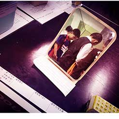 本作品創(chuàng)意是避免玩手機(jī)影響讀書(shū),臺(tái)燈須在插上手機(jī)時(shí)才會(huì)亮。