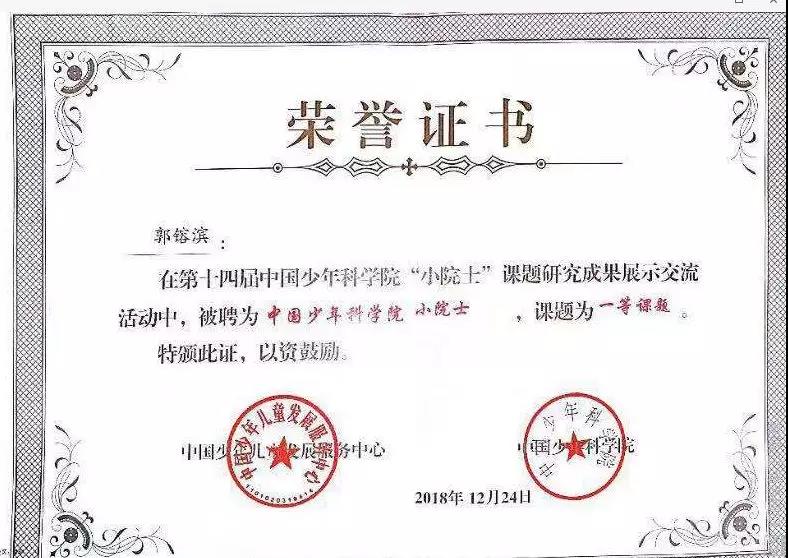 恭喜中國(guó)小院士-郭溶鑌同學(xué)!