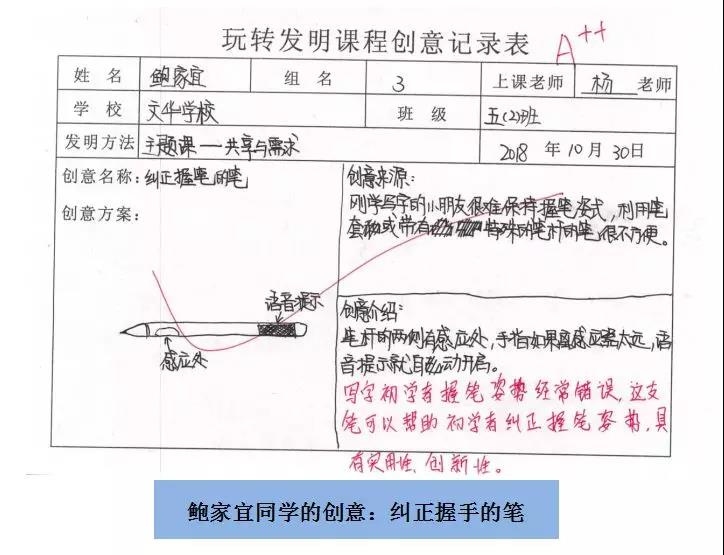如自動(dòng)加墨水鋼筆、廣播三角警示牌、糾正握手的筆、盲人出行鞋、吸力柜子等創(chuàng)意都能夠體現(xiàn)學(xué)員們的創(chuàng)新能力。