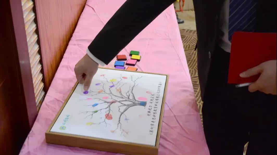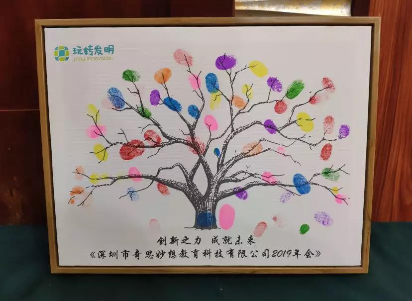 順便說一句,這是一副由員工的指紋點(diǎn)綴的大樹圖哦~不僅創(chuàng)意滿滿,還象征著奇思妙想全體人員團(tuán)聚一心,象征著公司像這棵大樹在每個(gè)員工的努力下,枝繁葉茂,越來越茁壯!