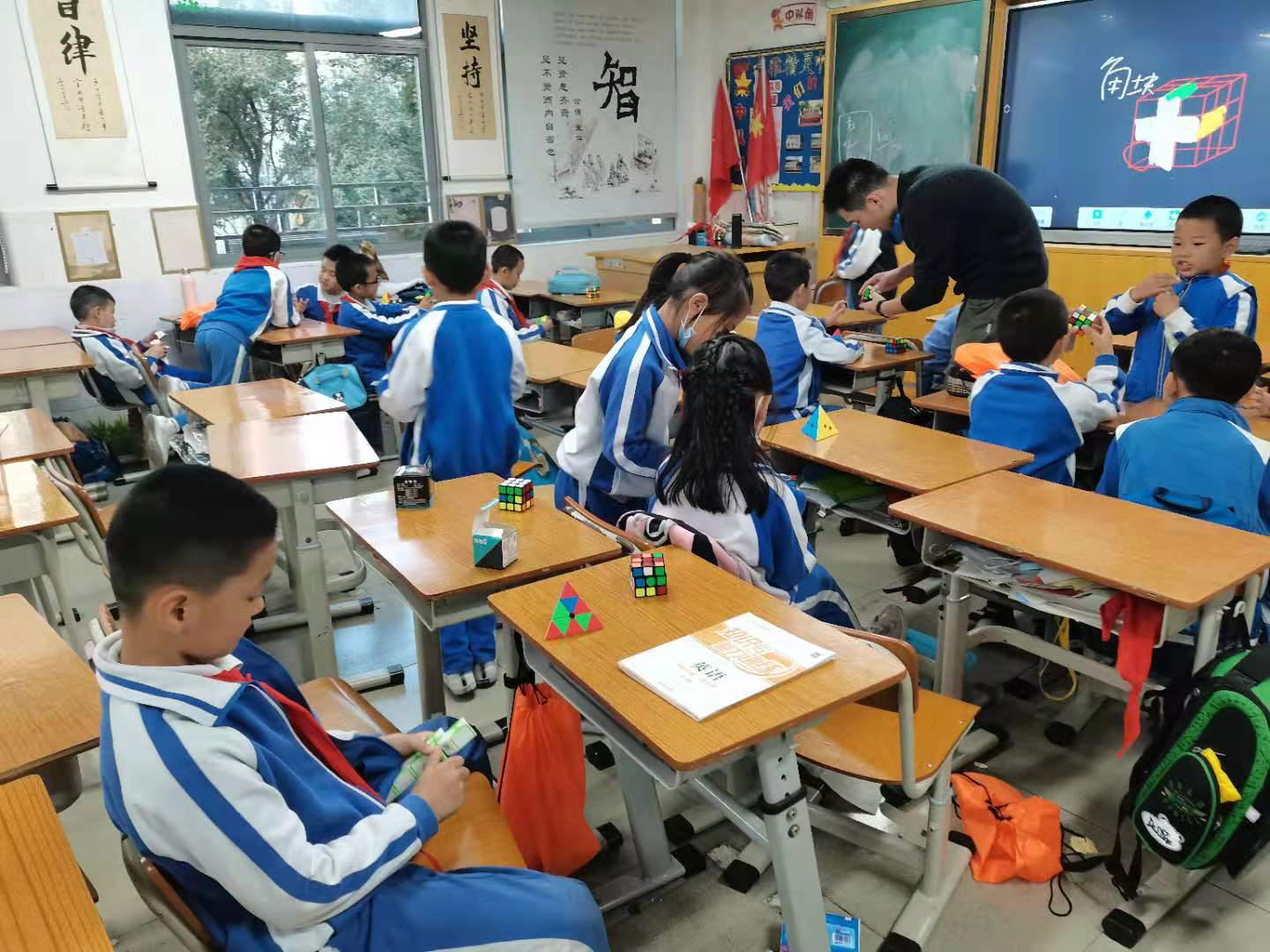 對(duì)于不太熟悉怎樣轉(zhuǎn)動(dòng)和復(fù)原魔方的同學(xué),他們還會(huì)互相幫助,在交流討論中一起動(dòng)手,共同學(xué)習(xí)和掌握魔方的玩法。