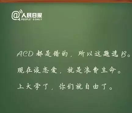 日夜嚴防死守,不讓我們談戀愛,說上大學(xué)了,我們就自由了;可是我們上了大學(xué)后,他又說等到工作后,我們就自由了?,F(xiàn)在我們終于畢業(yè)走向社會了,卻發(fā)現(xiàn)真正的自由,其實在學(xué)生時代。