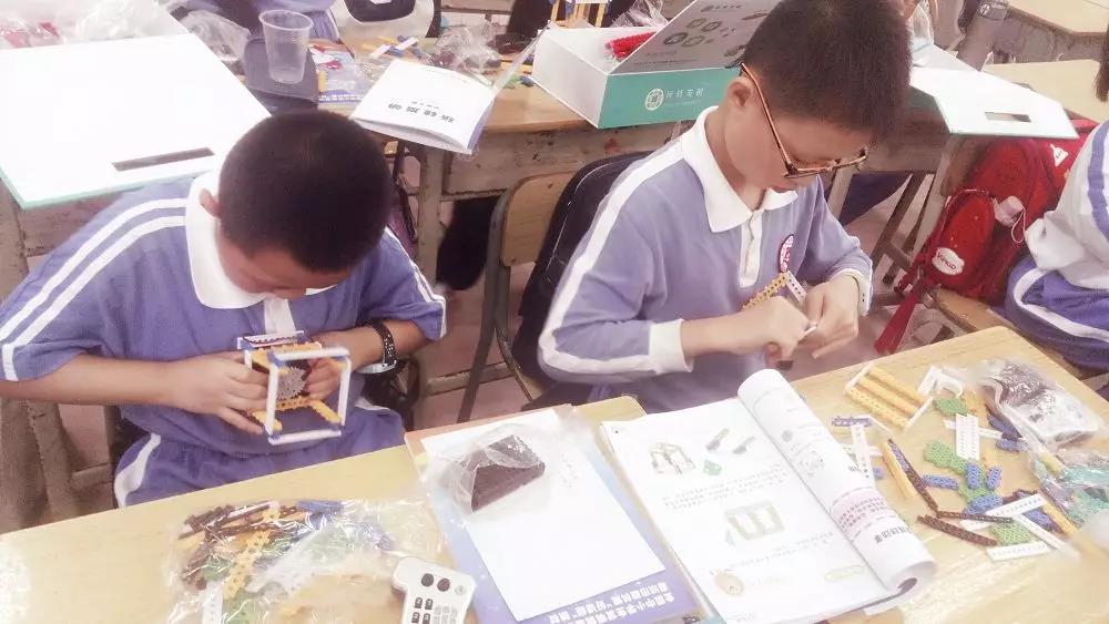 同桌互相幫忙,團(tuán)結(jié)協(xié)作!非常棒!在課堂上,我們不僅學(xué)習(xí)發(fā)明方法,鍛煉動手制作的能力,培養(yǎng)發(fā)散思維,還學(xué)會團(tuán)結(jié)合作,友愛互助!來到這個社團(tuán),我們就是一個團(tuán)體,不管來自哪個年級哪個班,在這里,我們是一家人!