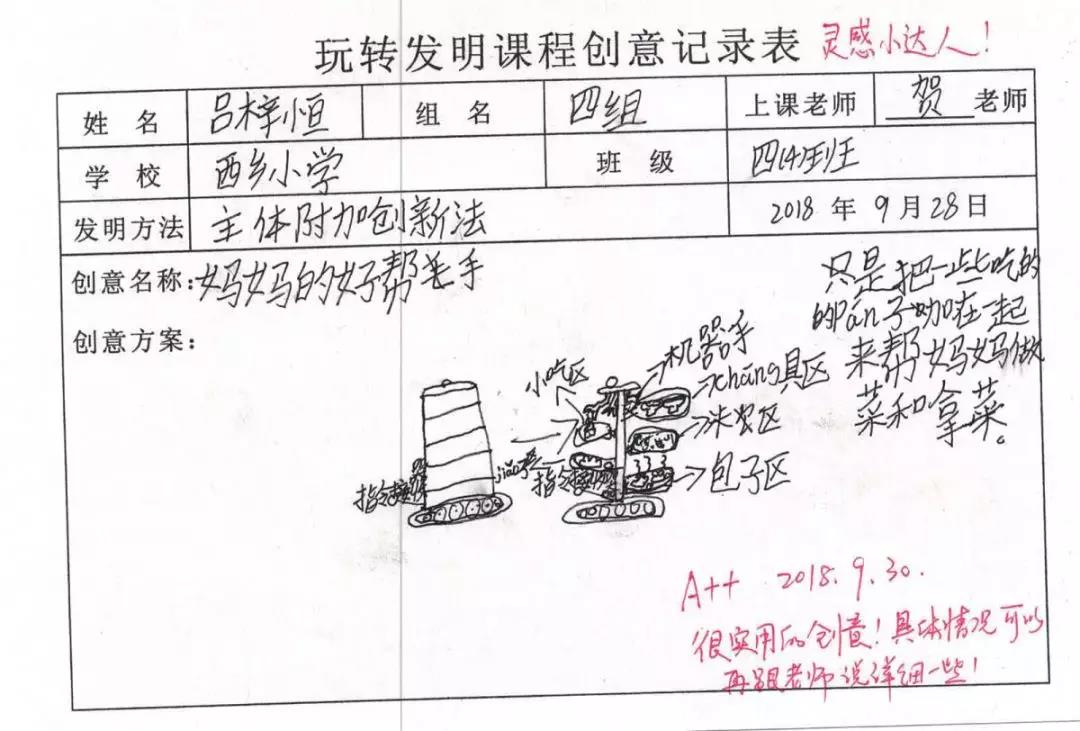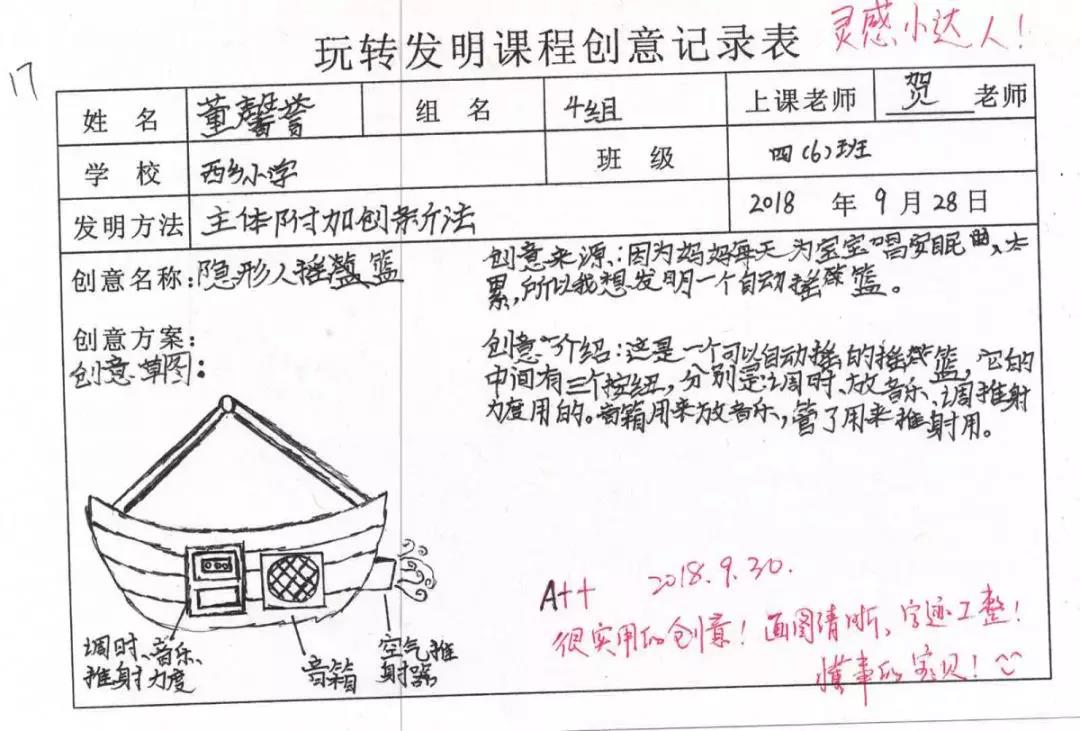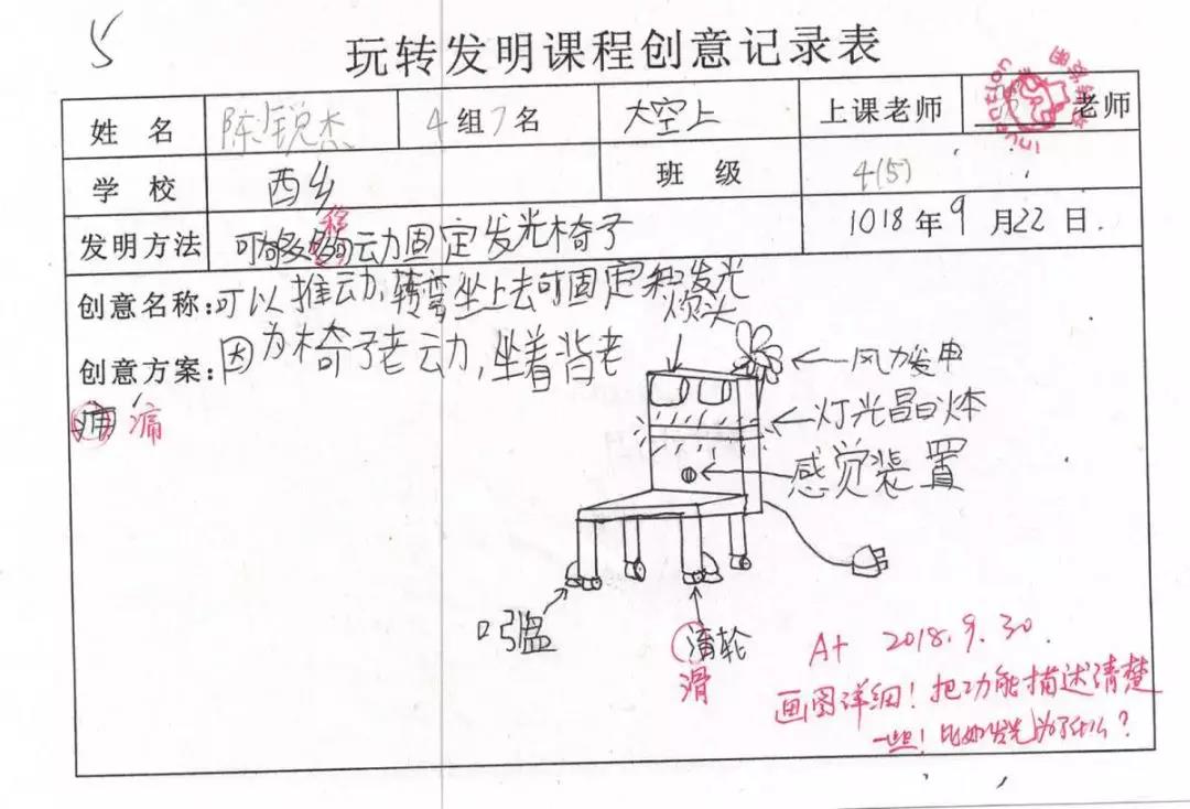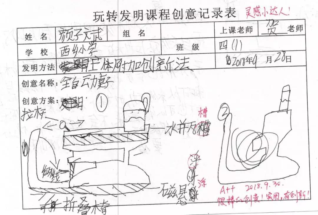 孩子們第一次寫靈感就能寫出這樣的水平,著實(shí)讓人欣慰和喜悅!他們都有自己的觀察和思考,把原本生活中常見的事物進(jìn)行大膽的改進(jìn),這是我們的課程所鼓勵和欣賞的。