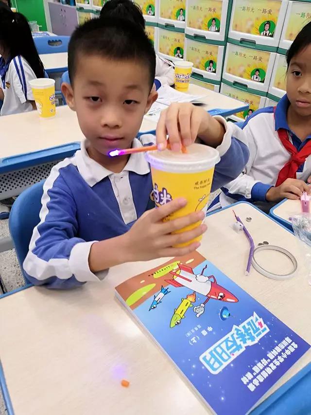 下面是孩子們上課制作的吸管小夜燈,利用水銀是液態(tài)金屬能導(dǎo)電的原理制作出來,孩子們都非常開心!