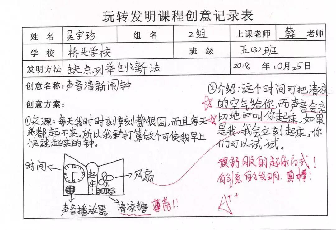 10月25日開始了我們橋頭學(xué)校的第一節(jié)玩轉(zhuǎn)發(fā)明課,很多孩子第一次接觸發(fā)明課程,就對(duì)發(fā)明課程產(chǎn)生了極大的熱情:在上課時(shí)積極舉手,撰寫靈感時(shí)認(rèn)真投入;