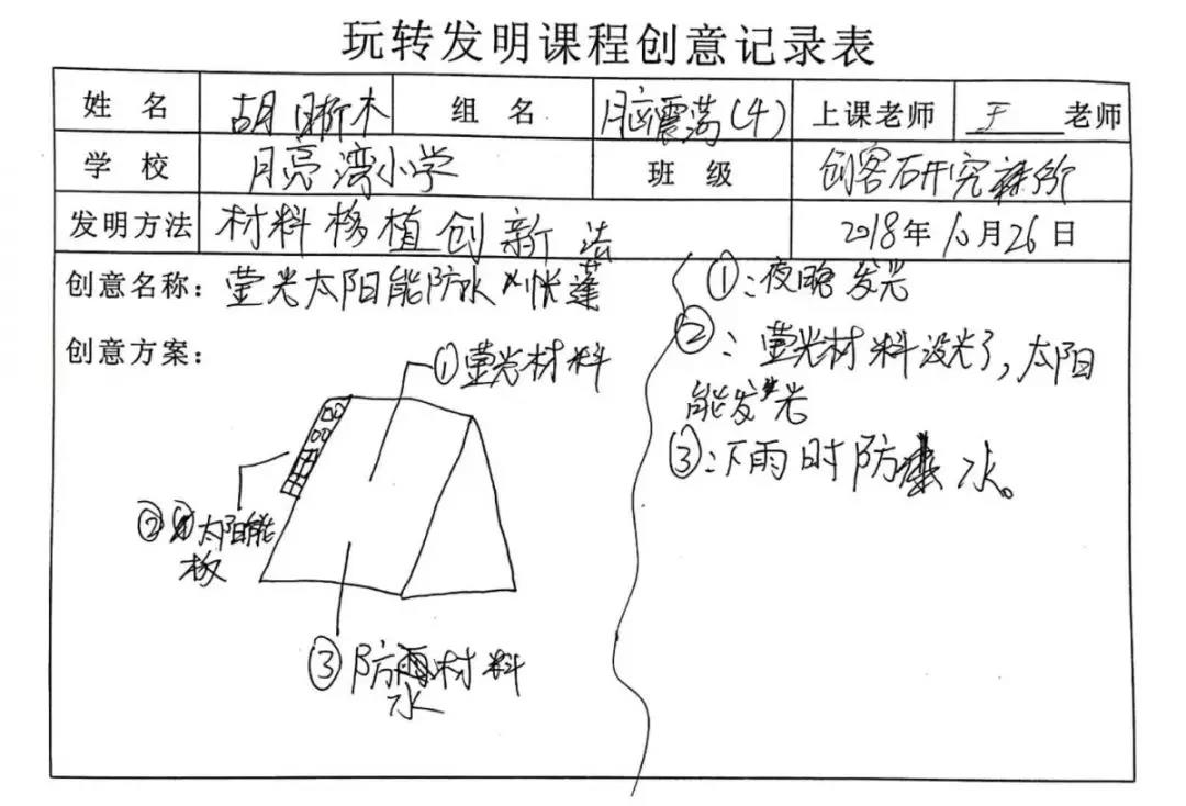 胡晰木同學(xué)的熒光太陽能防水帳篷,晚上能發(fā)光,還有太陽能,綠色、環(huán)保,真是居家旅行好幫手?。?/span>