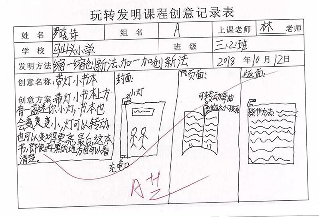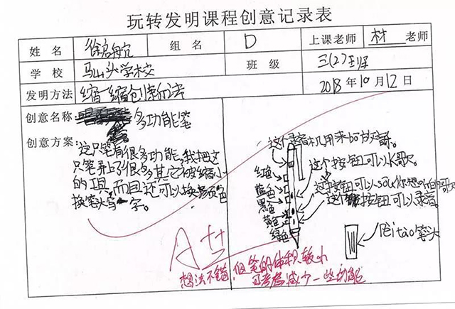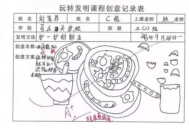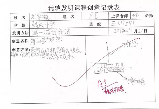 孩子們也從一開始不了解這個(gè)課程到現(xiàn)在能完整地寫出自己的創(chuàng)新發(fā)明,進(jìn)步很大,并且慢慢培養(yǎng)了創(chuàng)新思維,表現(xiàn)真的是棒棒的?。?!繼續(xù)加油吧!