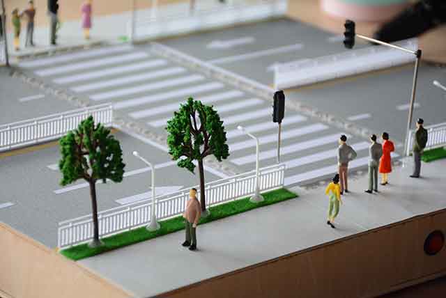 這個(gè)作品是一個(gè)霧霾天安全警示紅綠燈,靈感來(lái)源是現(xiàn)在中國(guó)很多城市霧霾很嚴(yán)重,有時(shí)甚至嚴(yán)重到影響人們看清紅綠燈,所有就需要有一種能夠在霧霾天也能非常醒目的紅綠燈。這個(gè)作品是通過(guò)一個(gè)模型來(lái)演示實(shí)際效果的,紅綠燈被安裝在馬路上,因?yàn)槁访骐x人眼比對(duì)面的紅綠燈離人眼要近得多,所以無(wú)論是行人還是司機(jī),都能夠清楚地看到紅綠燈的情況。此外,地面的紅綠燈也能夠提醒一些“低頭族”,防止因過(guò)度沉迷電子設(shè)備而發(fā)生事故。